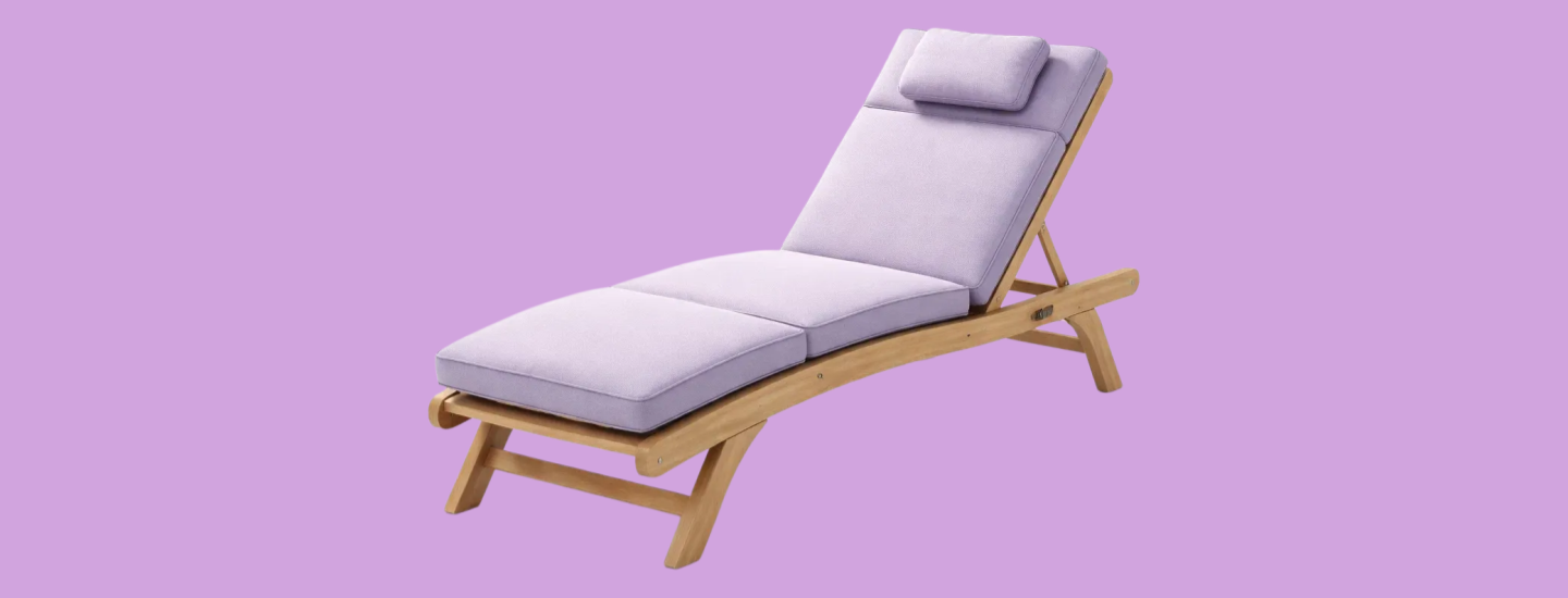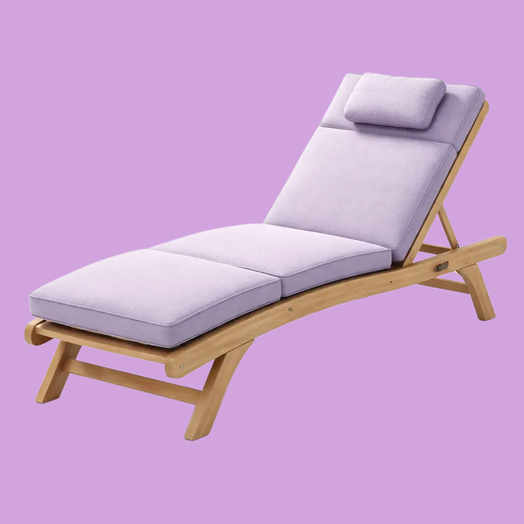 Chaise longue en bois avec coussin en tissu lavande